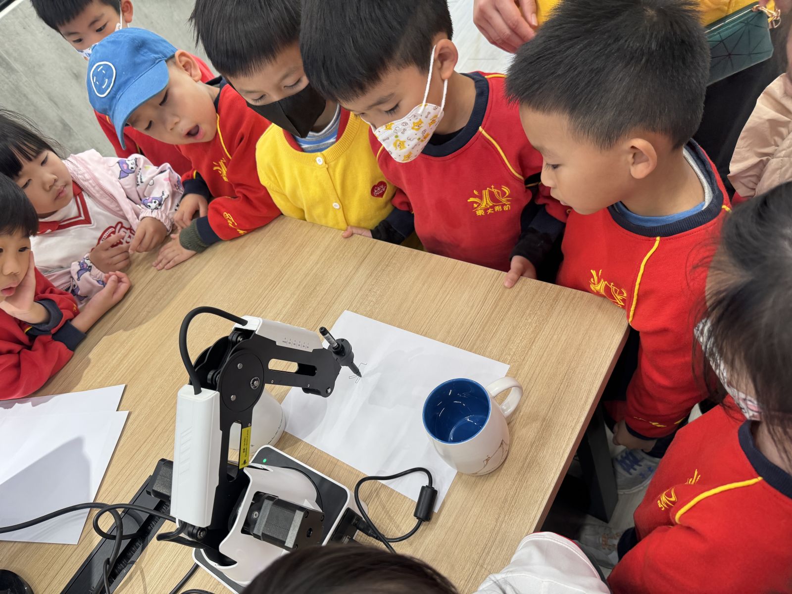 機器手臂應用:由陳昱仁老師向小朋友們介紹機器手臂如何協助人類完成各種精密的任務,並體驗了機器手臂寫字的環節,讓小朋友們對於機器手臂運作有初步的認識。