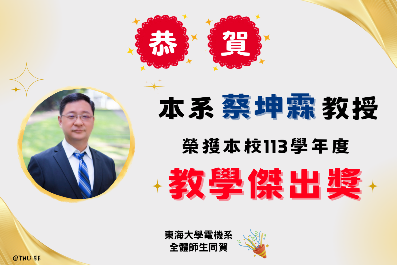 賀!本系蔡坤霖教授榮獲本校113學年度教學傑出獎