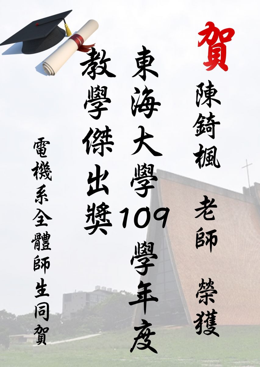 賀!本系陳錡楓老師獲109學年度教學傑出獎